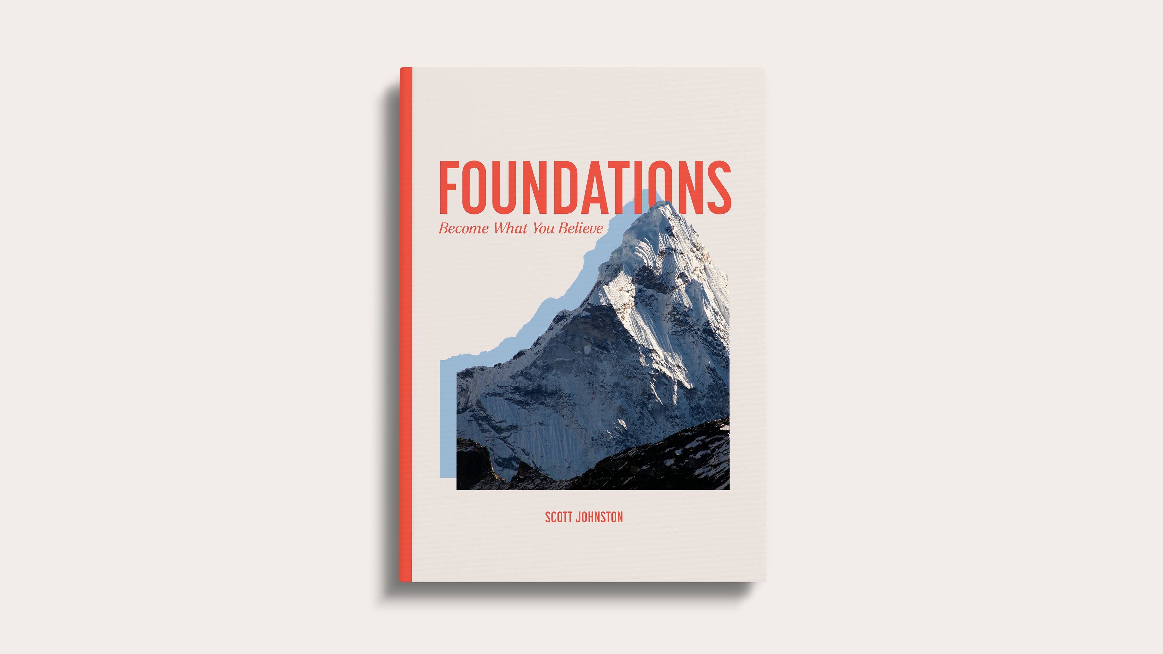 Book cover & interior layout design for Foundations: Become What You Believe, a devotional. Visual Objectives: Clean, clear and approachable. Style Objectives: Trendy, Mountain Imagery & Majestic